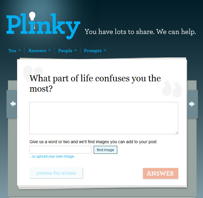 What do you think of Plinky? Would you consider using the service and can you think of any great prompts for everyone to write about?